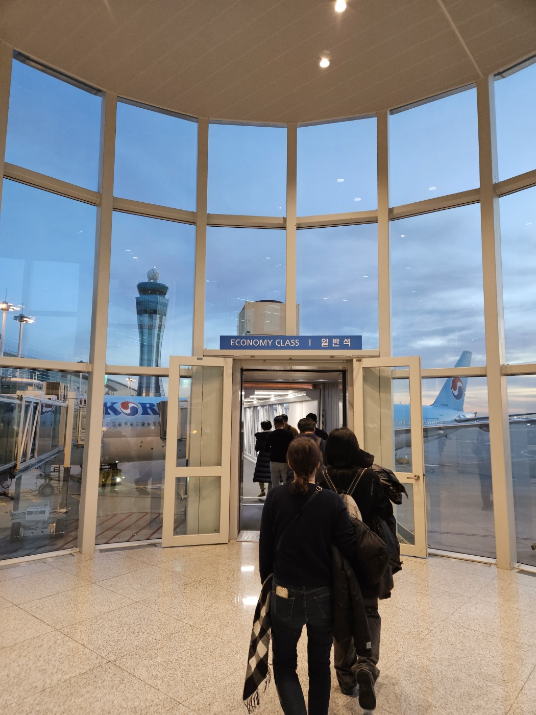 국내선 가는 무료버스에서 하차하면,